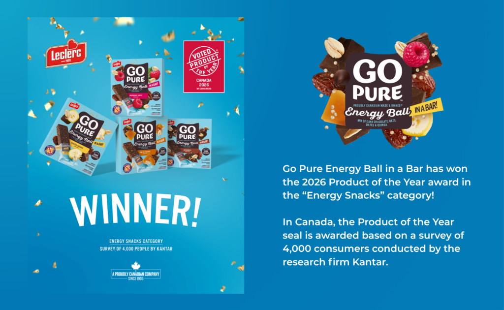 Go Pure takes on energy! Delicious, accessible, and made with 100% Canadian oats, the GO Pure snack bar offers so much more than just great taste. With its wide variety of flavors and textures, it’s here to give you the lasting energy you need to tackle your busiest days—while treating yourself with every bite.
