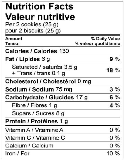 ENRICHED WHEAT FLOUR, SUGAR, MODIFIED PALM AND MODIFIED PALM KERNEL OIL, PALM OIL, COCOA POWDER, CHOCOLATE LIQUOR, GLUCOSE, SALT, WHEAT STARCH, SOYA LECITHIN, SODIUM BICARBONATE, MILK INGREDIENTS, NATURAL AND ARTIFICIAL FLAVOUR. CONTAINS WHEAT, SOY AND MILK. MAY CONTAIN EGGS.