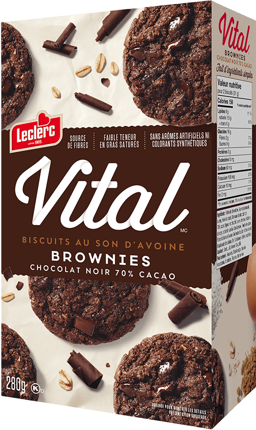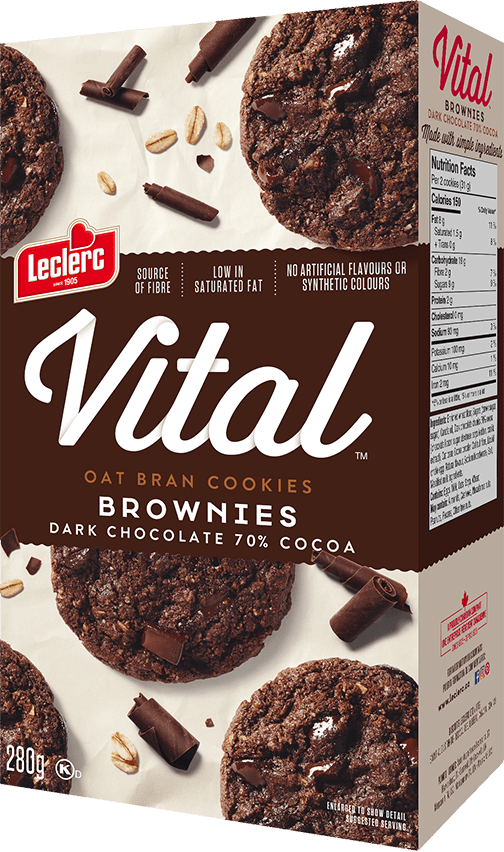 Delicious Oat Bran Brownie and Dark Chocolate Chunks 70% Cocoa cookies. They are a source of fibre. No artificial flavours or colours, we like them because of the tasteful experience they deliver!