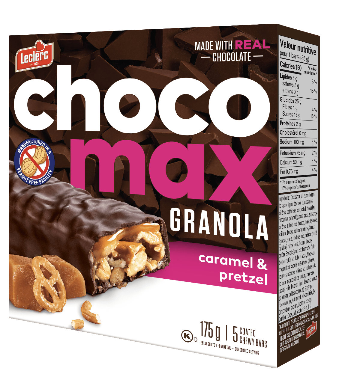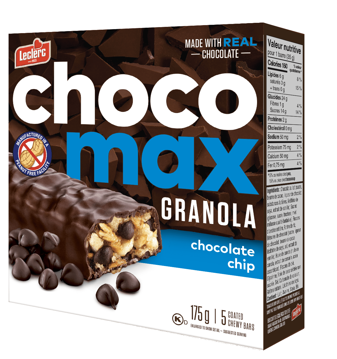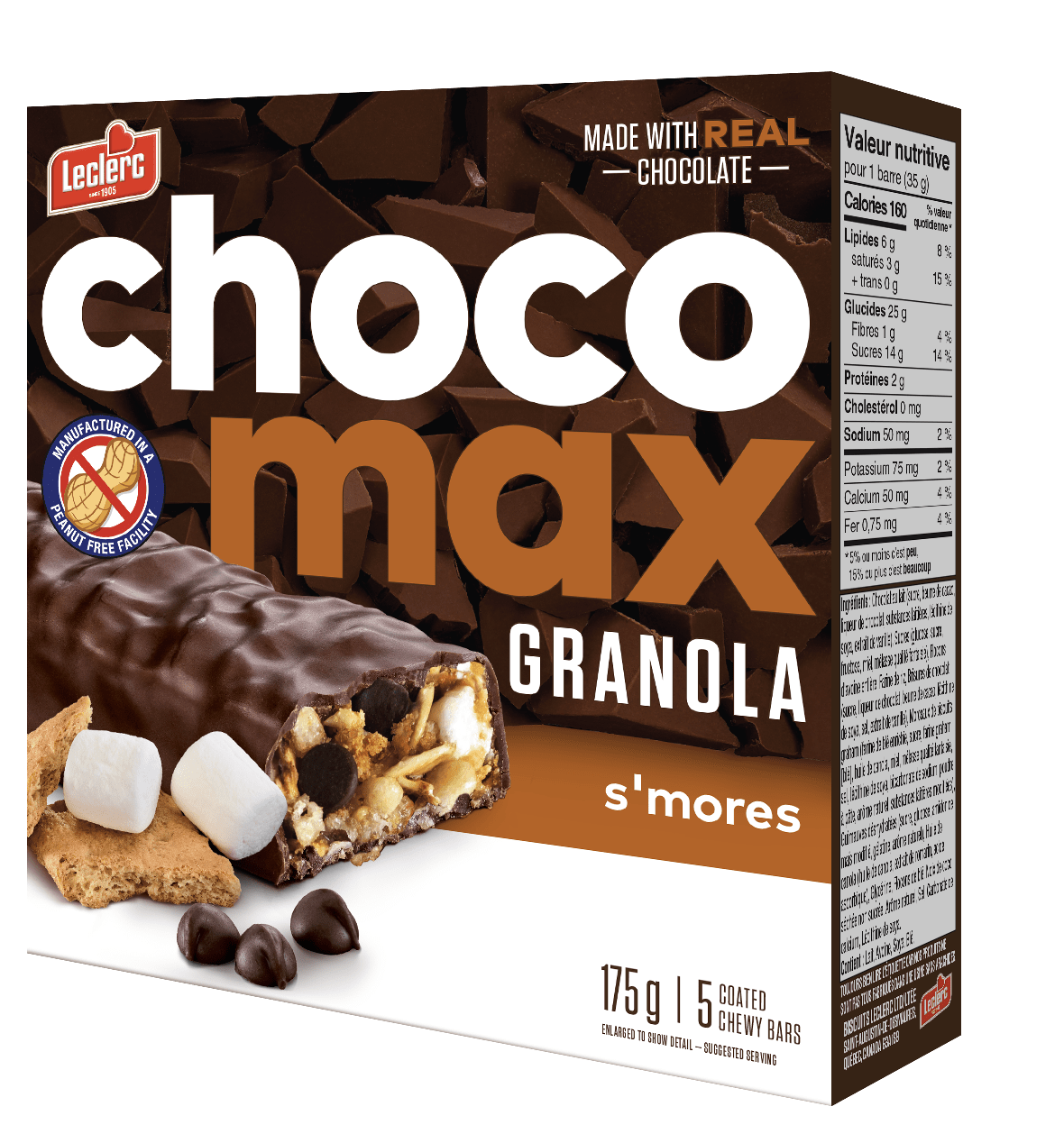 Milk chocolate (sugar, cocoa butter, chocolate liquor, milk ingredients, soya lecithin, vanilla extract), Sugars (glucose, sugar, fructose, honey, fancy molasses), Whole rolled oats, Rice flour, Chocolate chips (sugar, chocolate liquor, cocoa butter, soya lecithin, salt, vanilla extract), Canola oil (canola oil, rosemary extract, ascorbic acid), Wheat flakes, Glycerin, Dried unsweetened coconut, Salt, Calcium carbonate, Natural flavour, Soya lecithin.