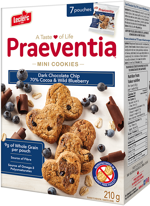 Mixed oat (whole rolled oats, whole oat flour), Brown sugar, Enriched wheat flour, Canola oil, Dark chocolate chips 70% cocoa (chocolate liquor, sugar, dextrose, cocoa powder, cocoa butter, soya lecithin, vanilla extract), Dehydrated cranberries (sugar, cranberries, sunflower oil), Cocoa powder, Milled chia seeds, Natural flavour, Sodium bicarbonate, Salt, Modified milk ingredients.