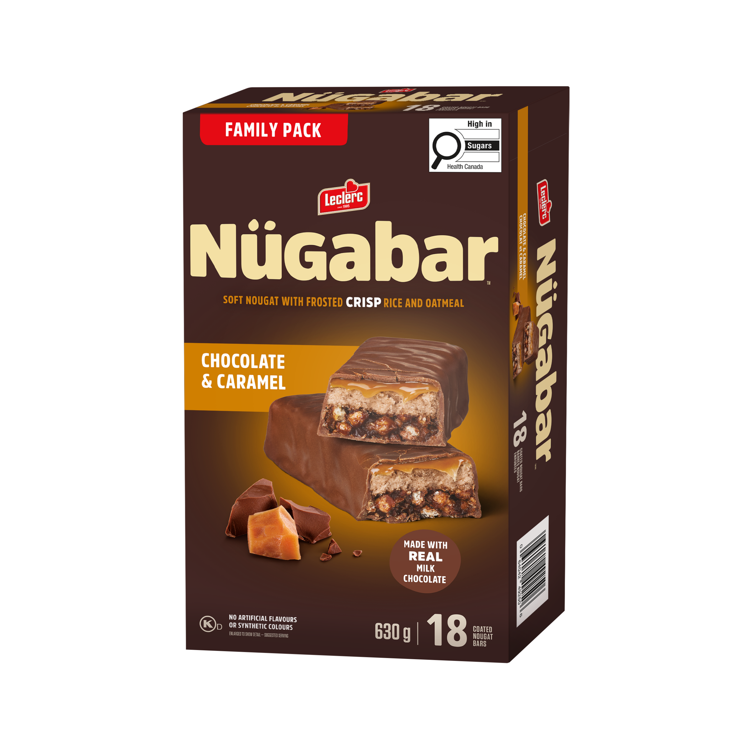 Sugars (glucose, sugar, icing sugar, fructose, honey, dry malt extract [barley]), Milk chocolate (sugar, cocoa butter, chocolate liquor, milk ingredients, soya lecithin, vanilla extract), Frosted crisp rice (rice flour, sugar, canola oil, calcium carbonate, salt, fancy molasses, sodium bicarbonate, soya lecithin), Canola oil, Whole rolled oats, Chocolate cookie crumbs (enriched wheat flour, sugar, cocoa powder, palm oil, glucose, sodium bicarbonate, salt, natural flavour, milk ingredients), Modified milk ingredients, Glycerin, Cocoa powder, Wheat starch, Salt, Natural flavour, Soya lecithin, Almond butter, Peanut butter, Cashew butter, Rosemary extract, Ascorbic acid, Carotene, Sunflower oil.