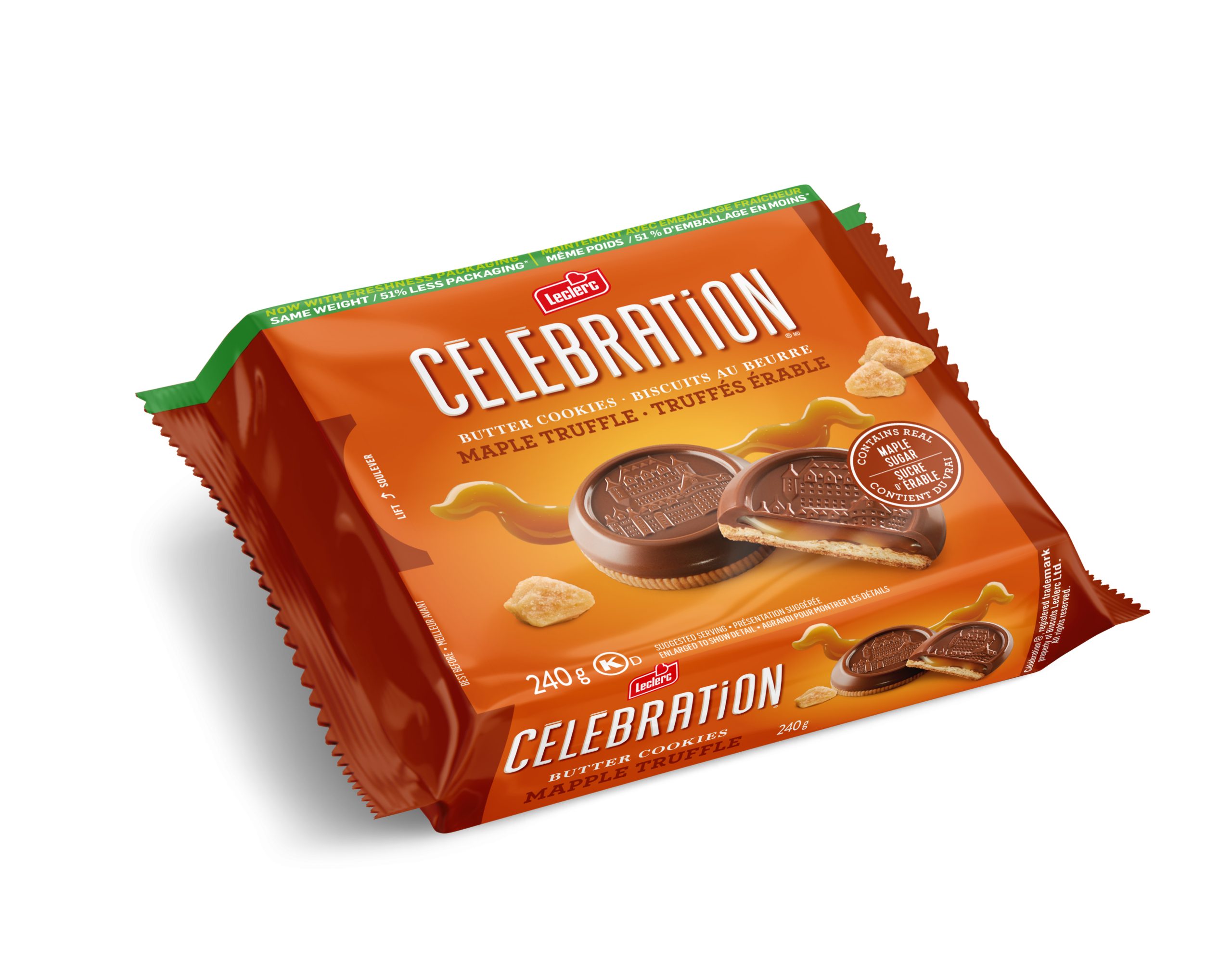 Milk chocolate (sugar, cocoa butter, chocolate liquor, milk ingredients, soya lecithin, vanillin), Enriched wheat flour, Maple flavoured filling (glucose, sugar, hydrogenated coconut and/or soybean oil, brown sugar, maple sugar, water, modified milk ingredients, salt, acethyled tartaric acid esters of mono- and diglycerides, natural and artificial flavour), Sugar, Butter (milk), Salt, Sodium bicarbonate, Soya lecithin, Artificial flavour.