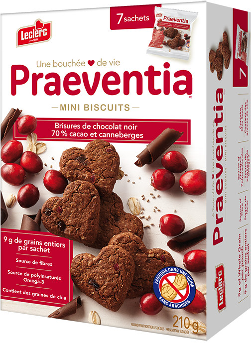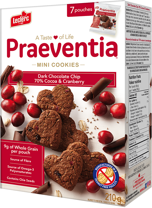 Mixed oat (whole rolled oats, whole oat flour), Brown sugar, Enriched wheat flour, Canola oil, Dark chocolate chips 70% cocoa (chocolate liquor, sugar, dextrose, cocoa powder, cocoa butter, soya lecithin, vanilla extract), Dehydrated cranberries (sugar, cranberries, sunflower oil), Cocoa powder, Milled chia seeds, Natural flavour, Sodium bicarbonate, Salt, Modified milk ingredients.