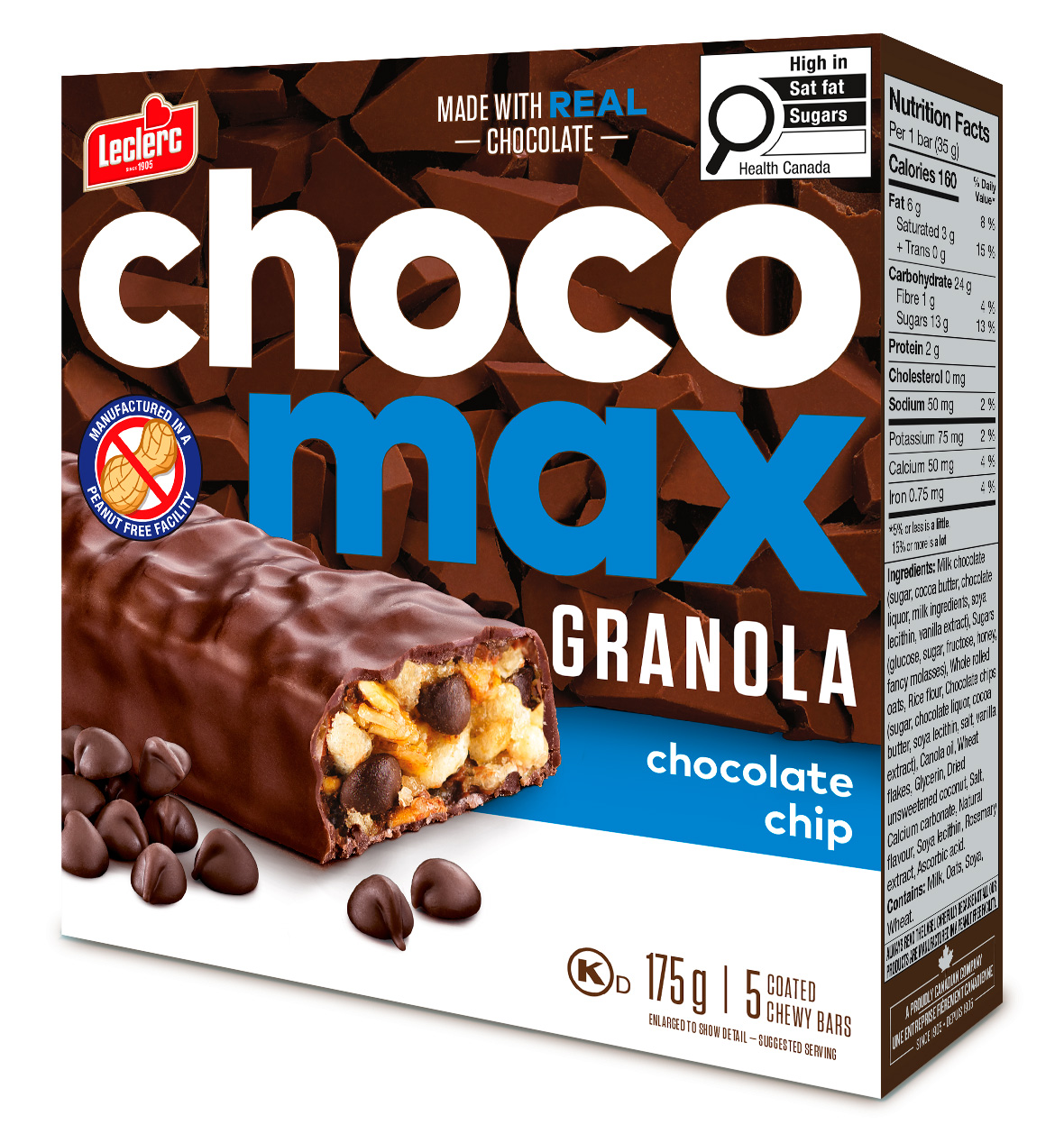 Milk chocolate (sugar, cocoa butter, chocolate liquor, milk ingredients, soya lecithin, vanilla extract), Sugars (glucose, sugar, fructose, honey, fancy molasses), Whole rolled oats, Rice flour, Chocolate chips (sugar, chocolate liquor, cocoa butter, soya lecithin, salt, vanilla extract), Canola oil (canola oil, rosemary extract, ascorbic acid), Wheat flakes, Glycerin, Dried unsweetened coconut, Salt, Calcium carbonate, Natural flavour, Soya lecithin.