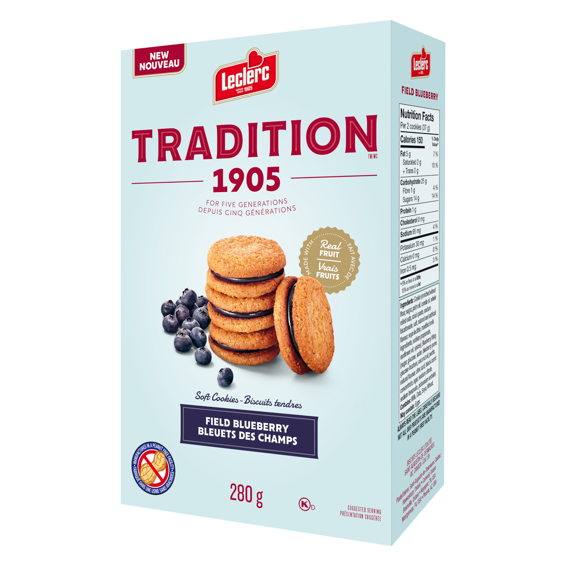 This New Soft Cookie is inspired by our Grandma’s Homemade Jams. The delicious Blueberry Filing and the Soft Cookie texture complete each other perfectly. In addition, this cookie is made with Real Fruit, there are no synthetic flavours or colours, and the cookie is also certified Peanut Free. A tasty Tradition!