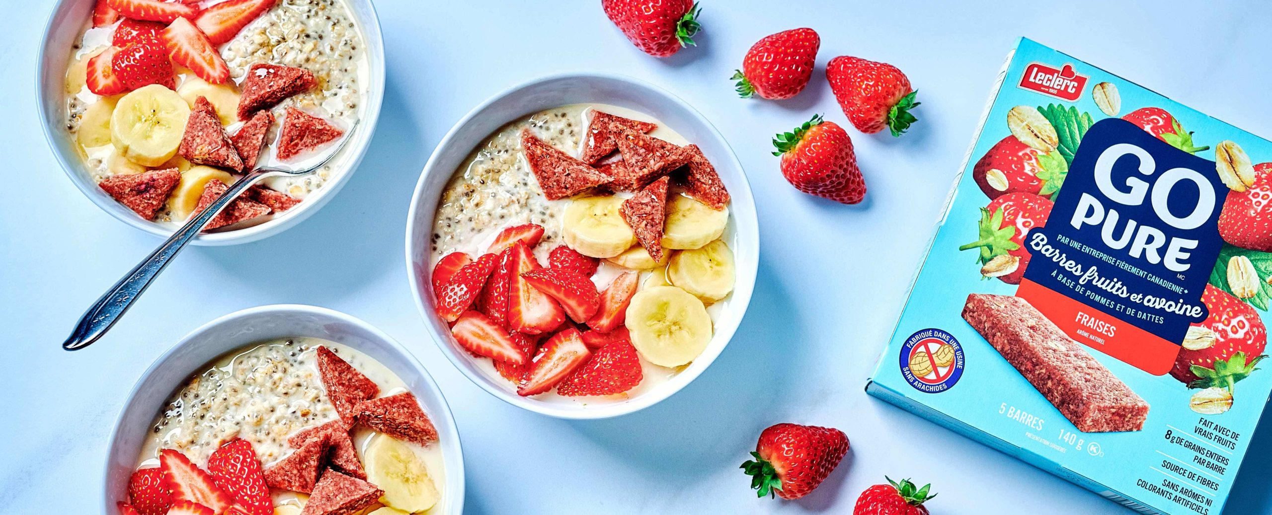 - Serve in a bowl. Top with the banana, strawberries and oat bar. Drizzle with more honey, if desired. Serve immediately.