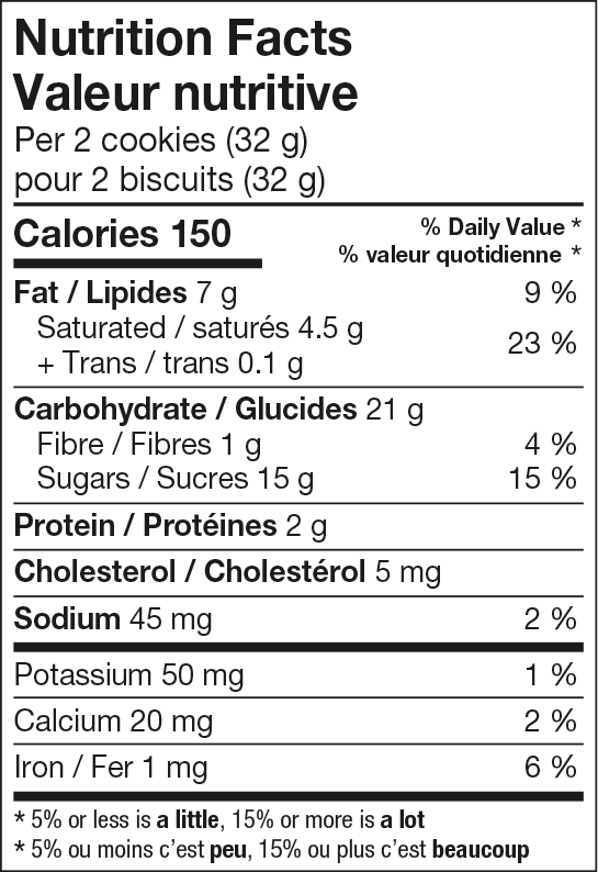 Chocolat au lait (sucre, beurre de cacao, liqueur de chocolat, substances laitières, lécithine de soya, vanilline), Garniture à la guimauve (glucose, sucre, eau, huile de noix de coco, substances laitières modifiées, monoglycérides, arôme naturel, bioxyde de titane, sel, lécithine de soya), Farine de blé enrichie, Sucre, Farine graham, Beurre, Arôme naturel, Bicarbonate de sodium, Sel, Lécithine de soya.