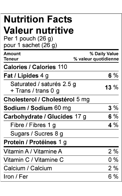 Mini-biscuits au beurre avec du vrai chocolat au lait. On les aime parce qu’ils goûtent le vrai… mais aussi pour leur portabilité (7 sachets par boîte). En plus, c’est la collation parfaite pour la boîte à lunch car ces biscuits sont certifiés sans arachides.