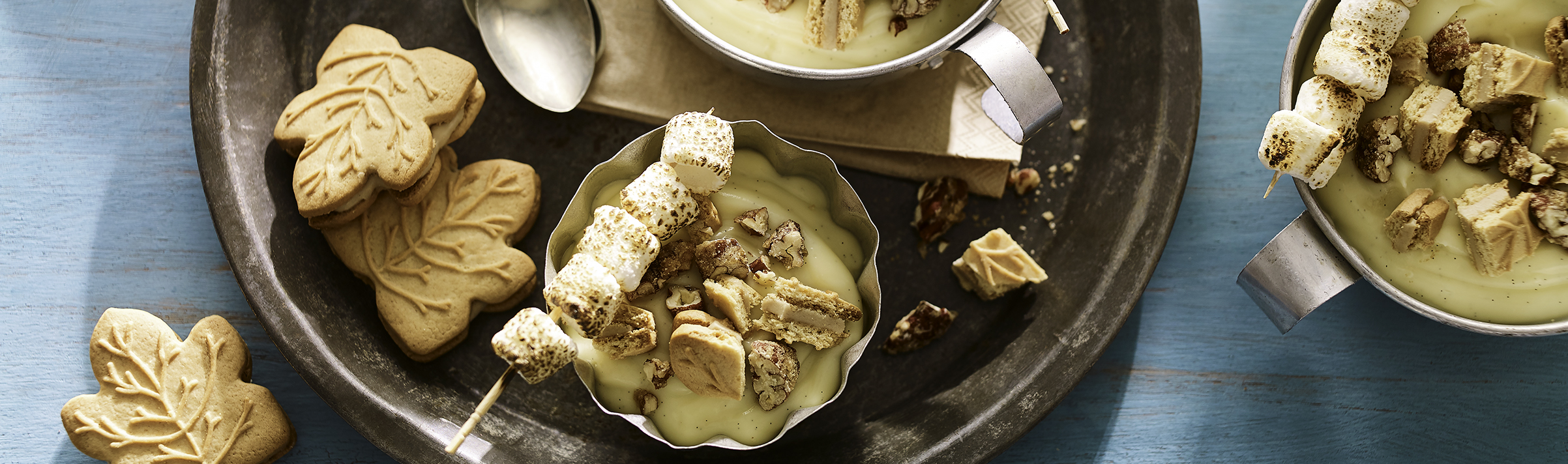 À l’aide d’une torche de cuisine, griller les guimauves.